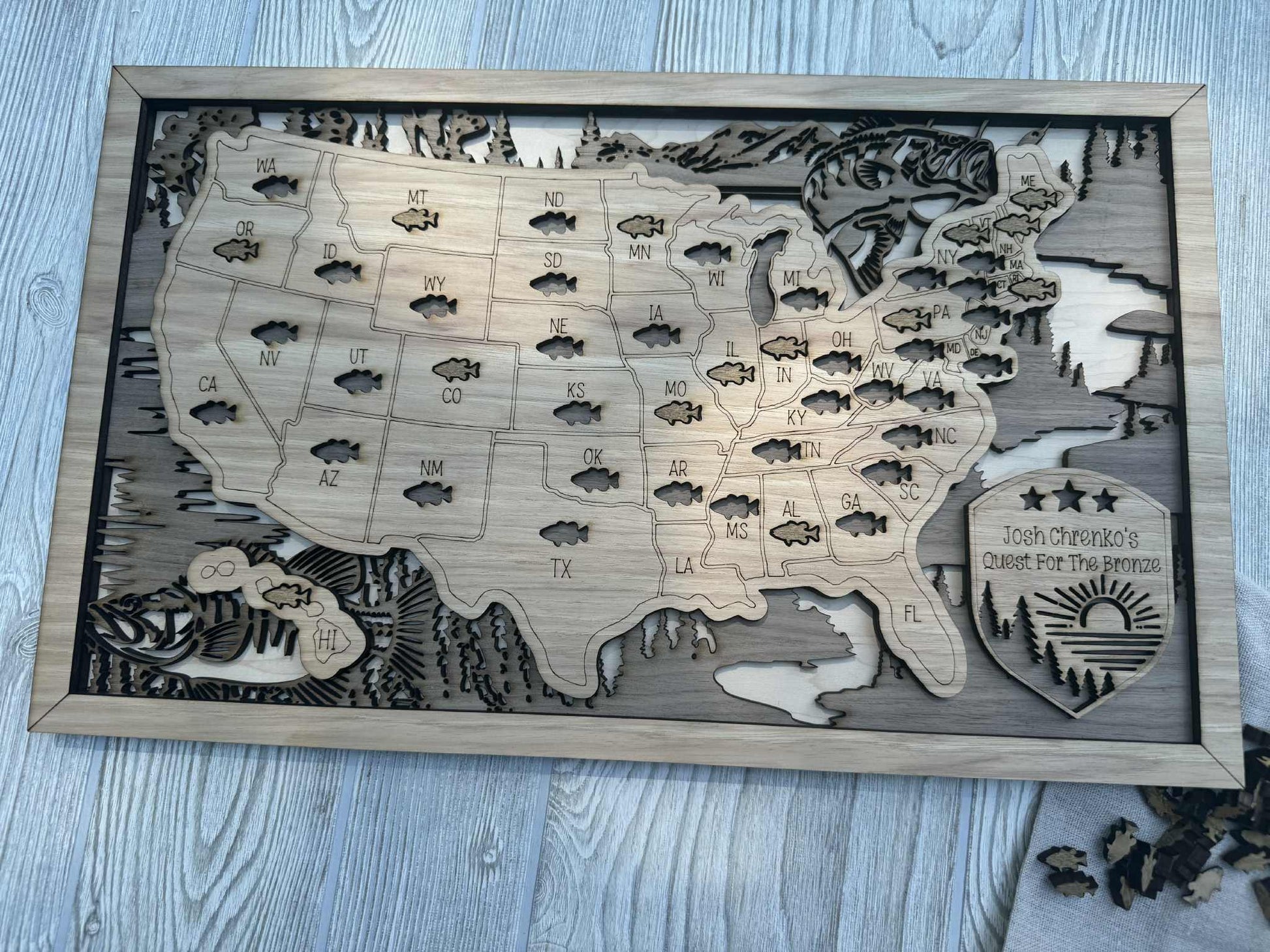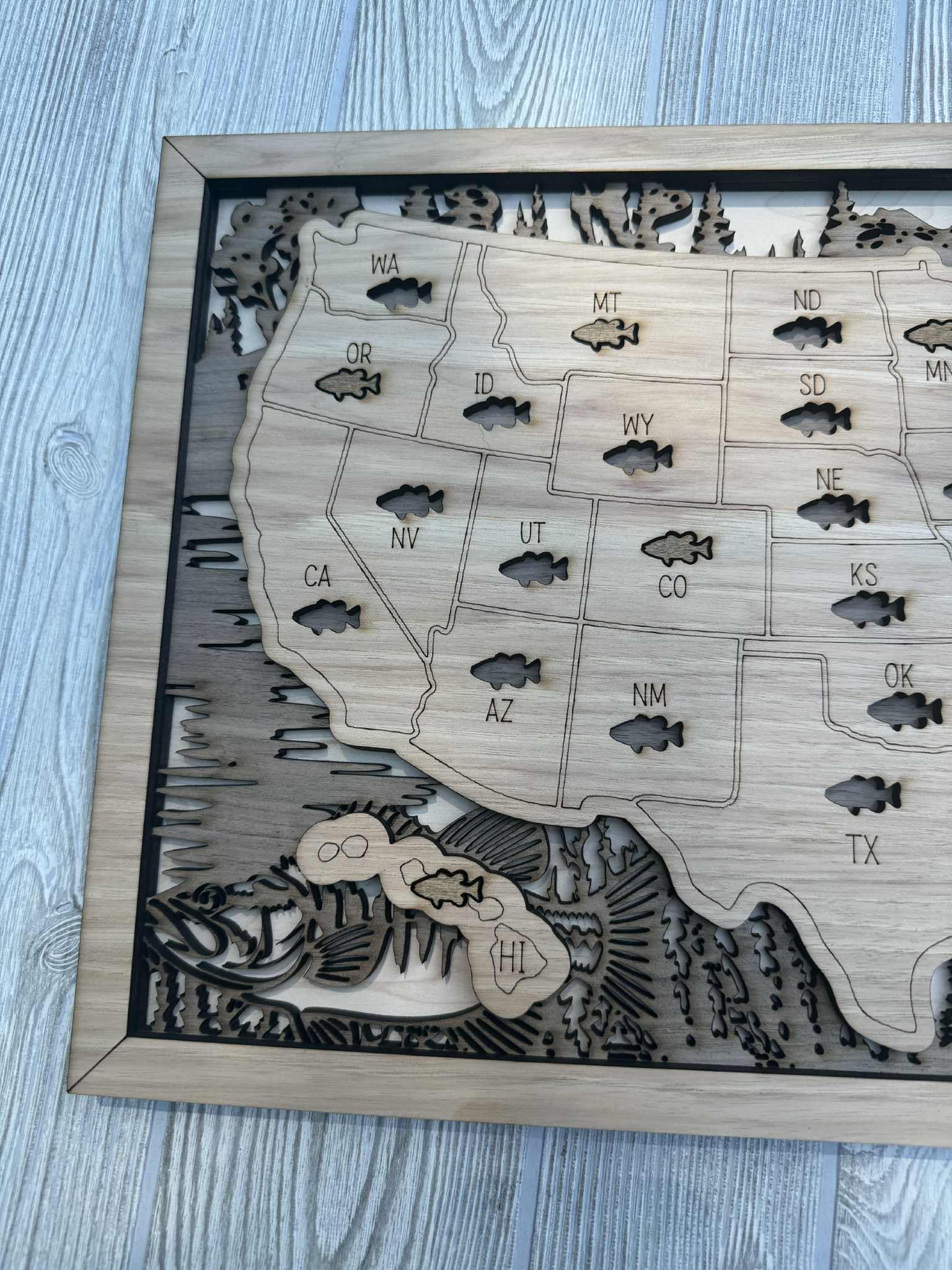 Calling all smallmouth fanatics! This handcrafted wooden bucket list map is the perfect way to track your mission to catch a smallmouth bass in every U.S. state. Made for anglers who love a challenge and appreciate beautiful gear, this map turns your fishing journey into a trophy of its own.